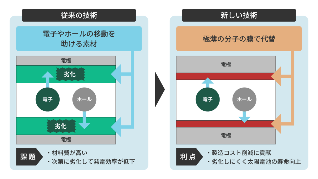 推進力 | 電荷輸送材不要による低コスト化と長寿命化 |